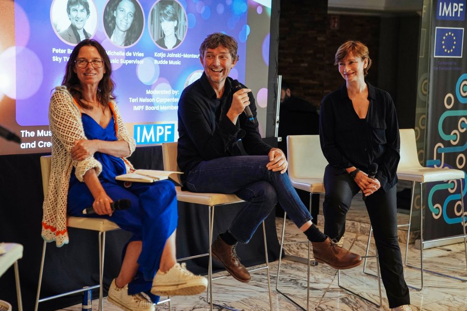 The Music Supervisors, Synch and Publishers panel was moderated by IMPF Board Member and President & CEO at Reel Muzik Werks Teri Nelson Carpenter and featured [L-R] Michelle de Vries (music supervisor); Peter Bradbury (Sky TV); and Katja Jainski-Manteuffel (Budde Music).