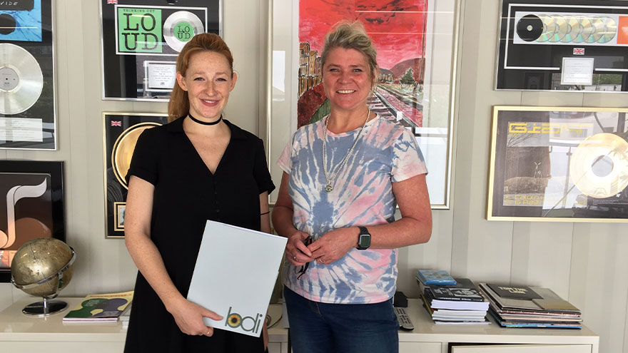 Marina Elderton with her publisher, BDi Music founder Sarah Liversedge.